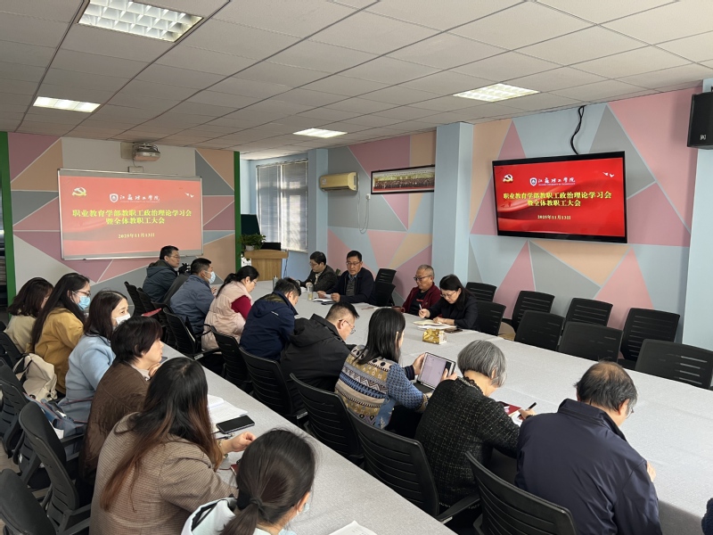 11月13日上午,职业教育学部在49号楼201会议室召开教职工政治理论专题学习会暨教职工大会,学部全体教职工参加了会议。会议由学部党委书记郭耿玉同志主持。